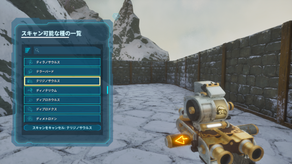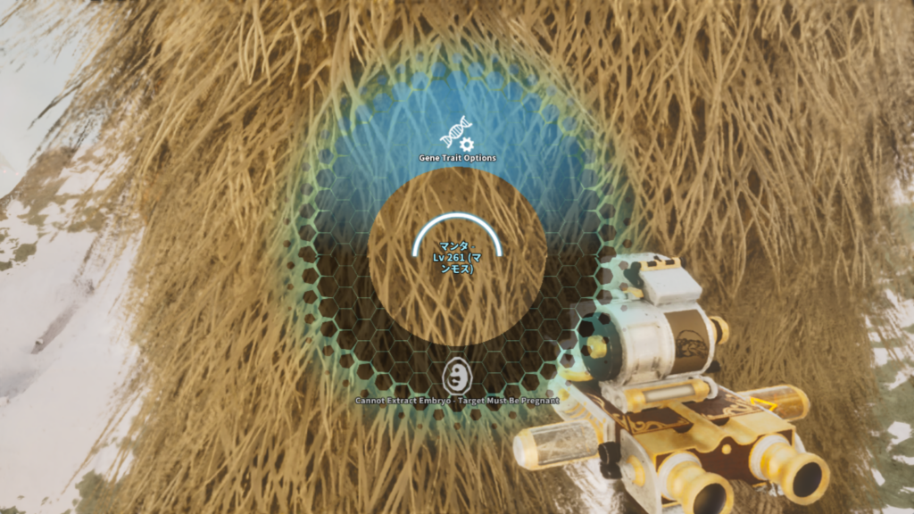 遺伝子特質の抽出・移植は、遺伝子スキャナーを装備した状態で対象の恐竜に近づくことで行えます。